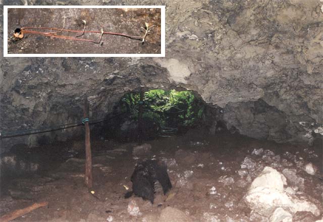 We walked through a lava tube - following on the surface of formerly underground molten lava, retracing the flow's path back to its source. At one point, an albino avocado seed had sprouted two stalks and grew white, color-free leaves reaching out toward the electric light source.