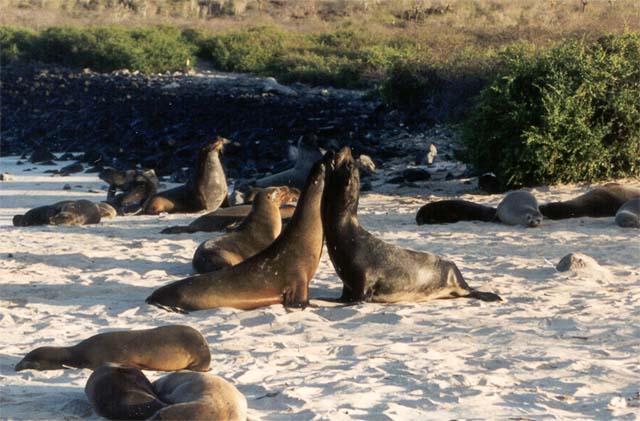 On the beach, the immature sea lion males play like they are attaching each other - in preparation for future, real challenges.