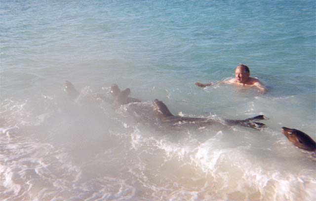 Afterwards, Fereydoon went on the white beach and romped with the baby sea lions.