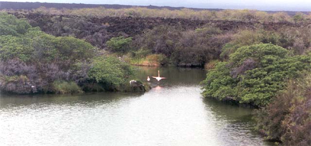 Floreana Island (Charles) - Punta Cormoran - "an olivine green beach" rimmed by mangroves; flamingo lagoon; Galapagos ducks; white sand beach where sea turtles nest.