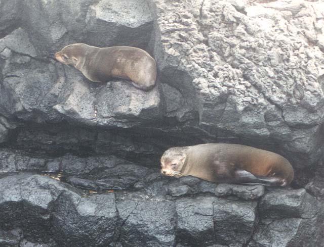 James Island (Santiago) - West coast - Puerto Egas - fur seals; erosion of the lava formed pools, caves and inlets; marine iguanas, sally lightfoot crabs, herons, flycatchers and Galapagos hawks.